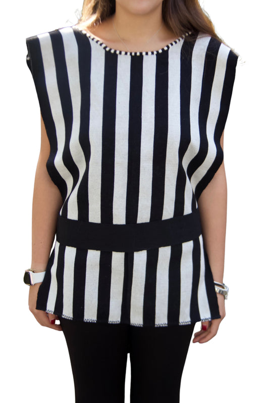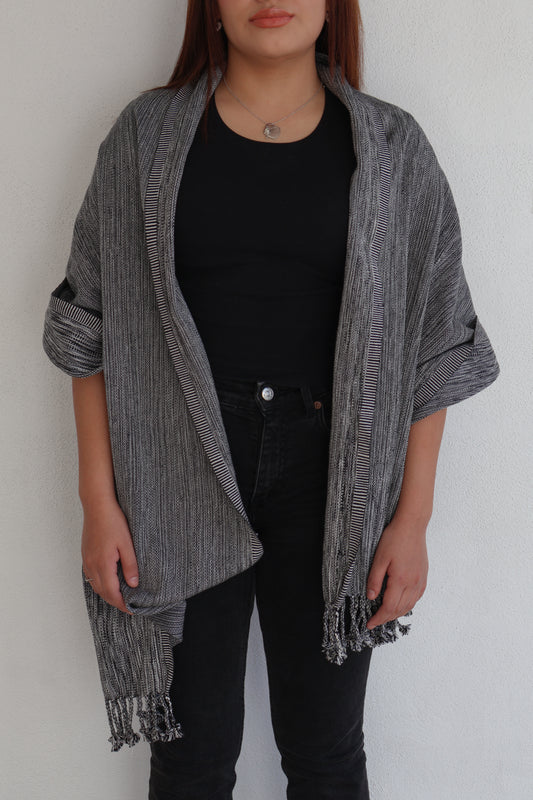 CHAL BLANCO CON NEGRO Y RAYAS