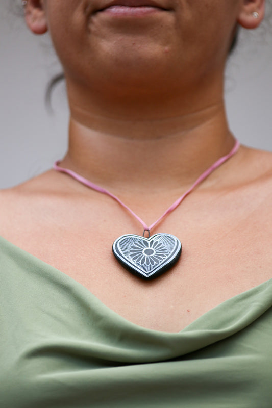 COLLAR CORAZON CON LISTON ROSA