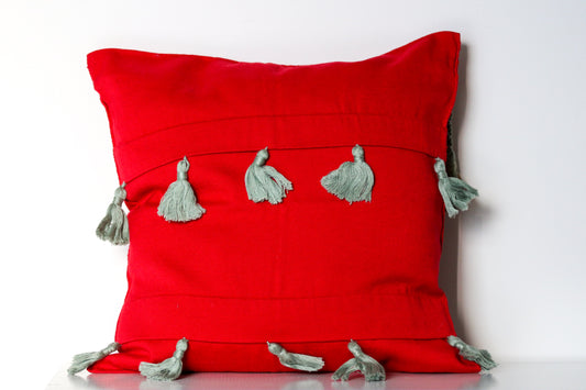 FUNDA PARA COJÍN ROJO CON TURQUESA