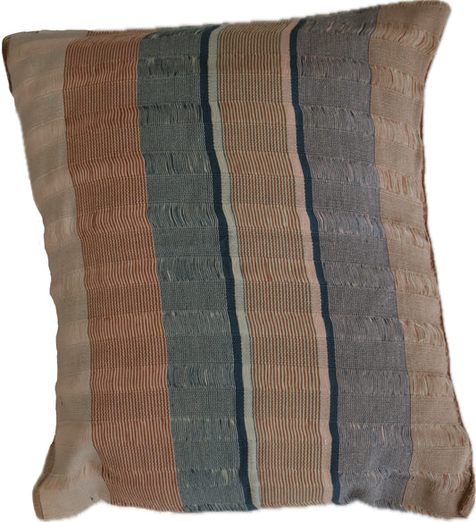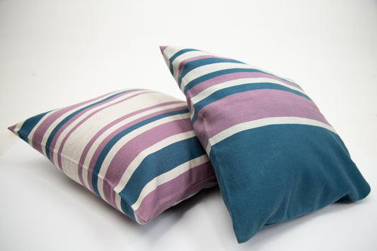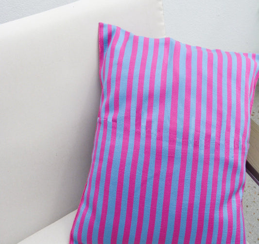 FUNDAS PARA COJÍN AZUL CON FRANJAS ROSA Y BLANCO