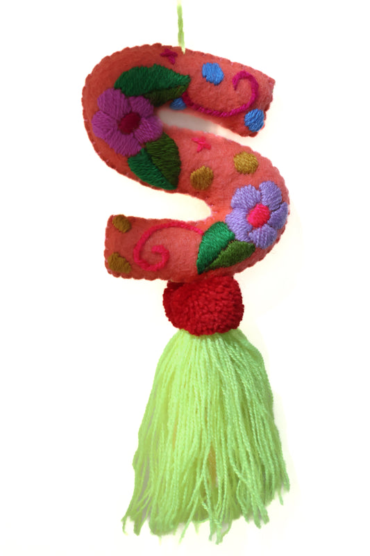 LETRA BORDADA S CON CAMPANA AMARILLA