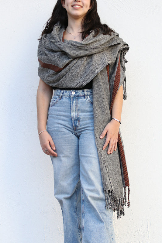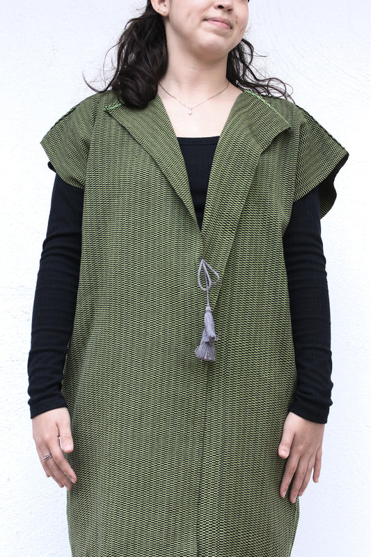 PONCHO VERDE CON ORILLA NEGRA Y GRIS