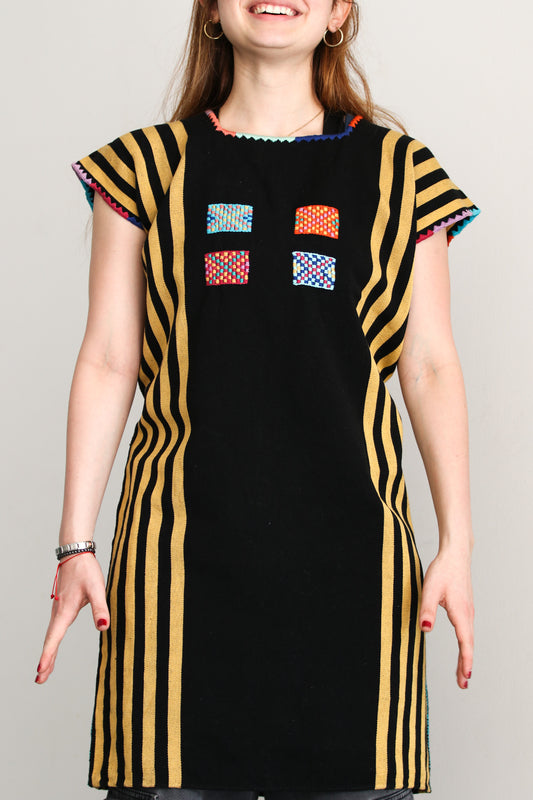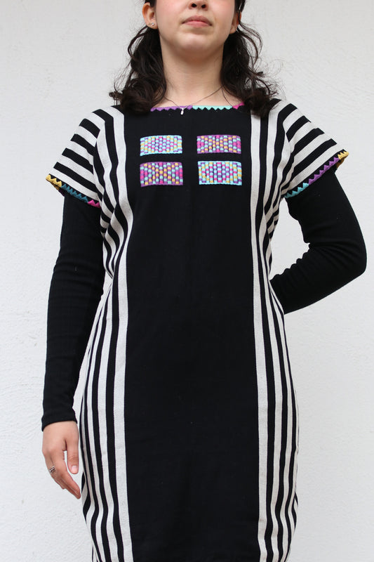VESTIDO NEGRO CON RAYAS BLANCAS