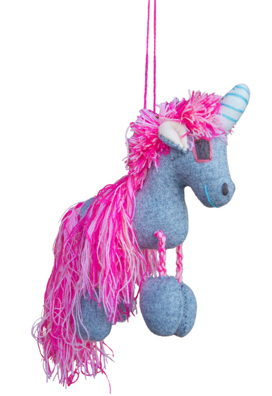 UNICORNIO COLGANTE GRIS CON ROSA