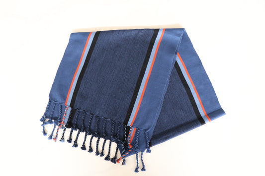 BLUE TABLE RUNNER WITH BLACK STRIPES