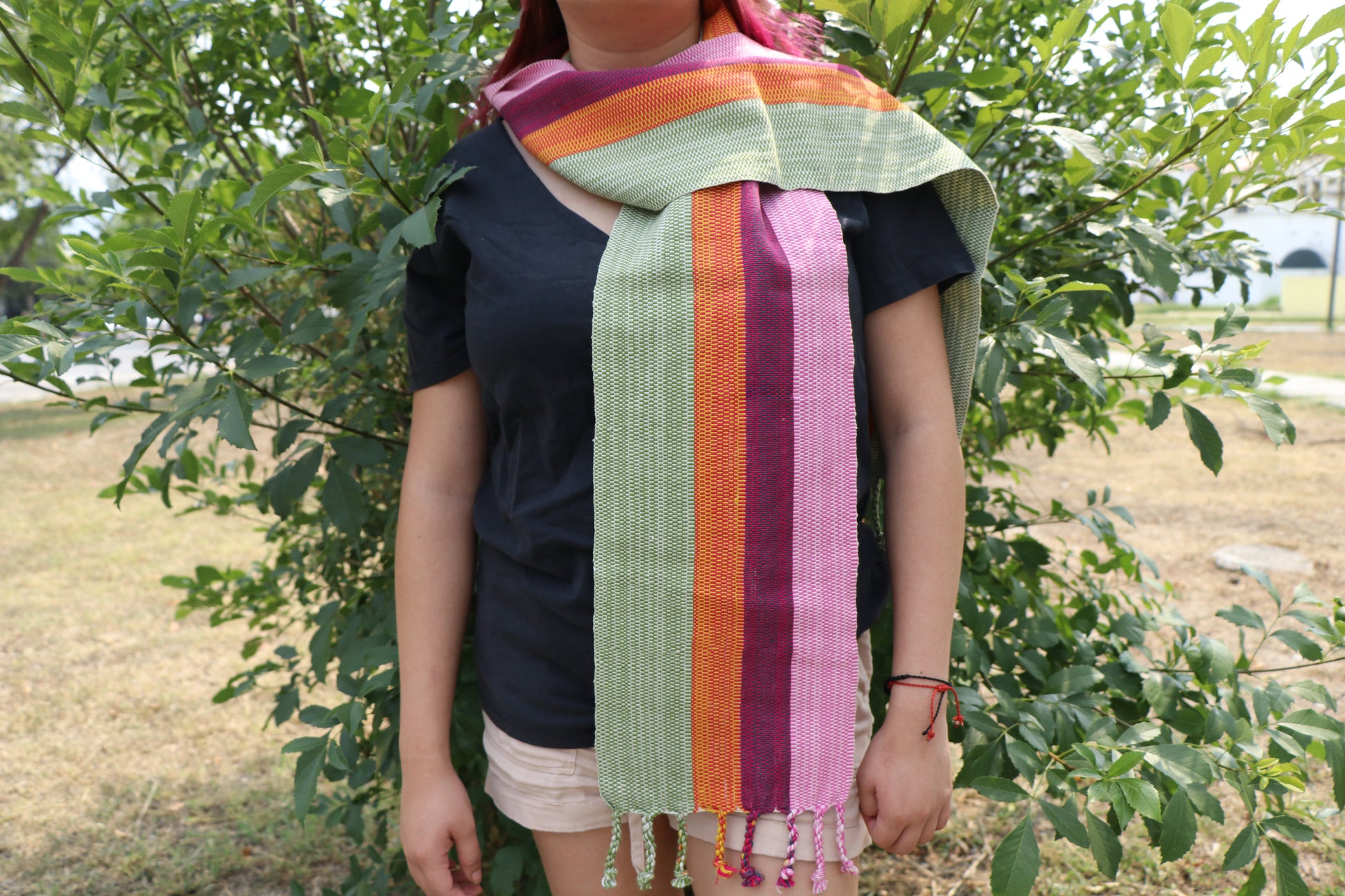 Woven on a backstrap loom. 100% cotton. Measurements: 180 x 20 cm