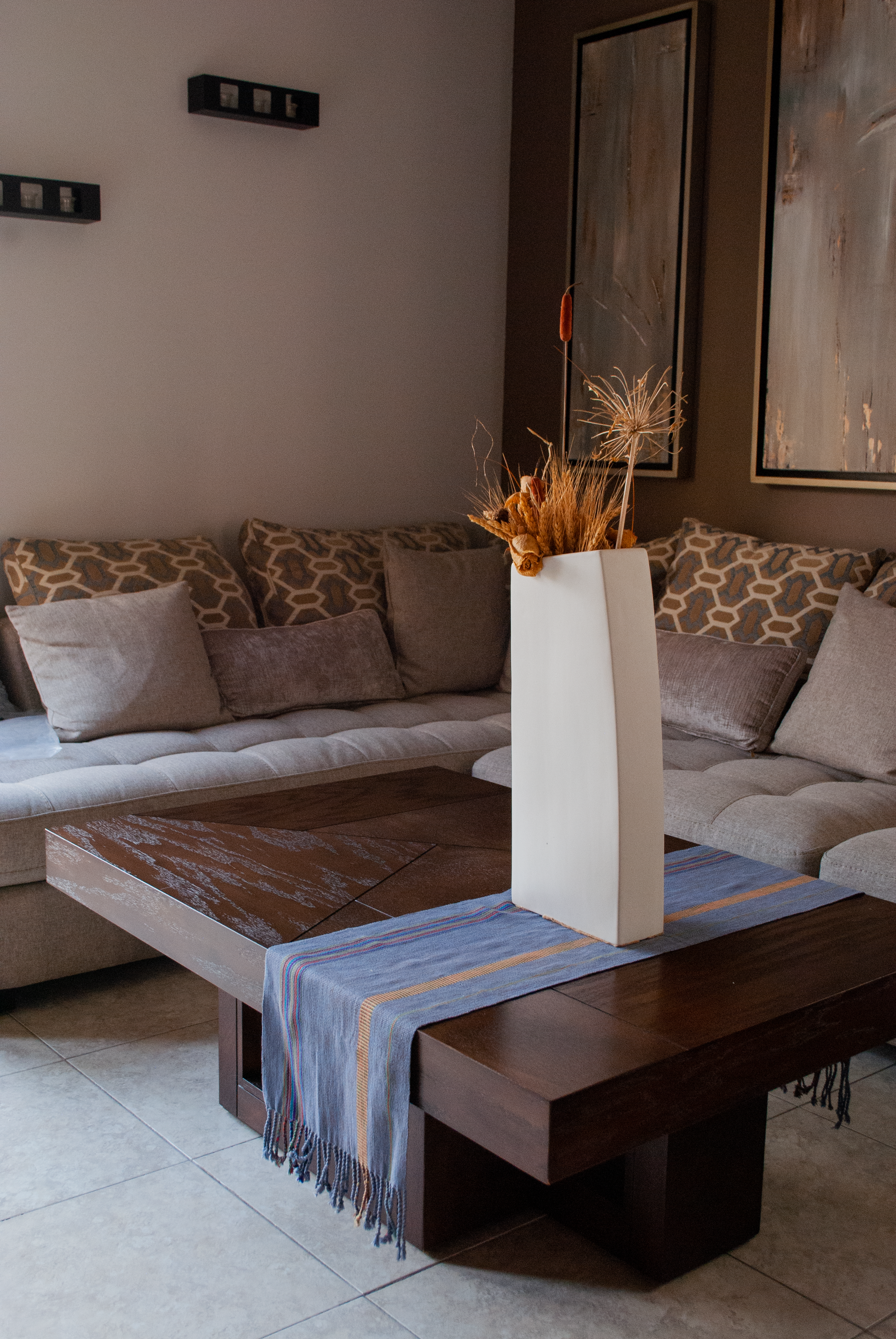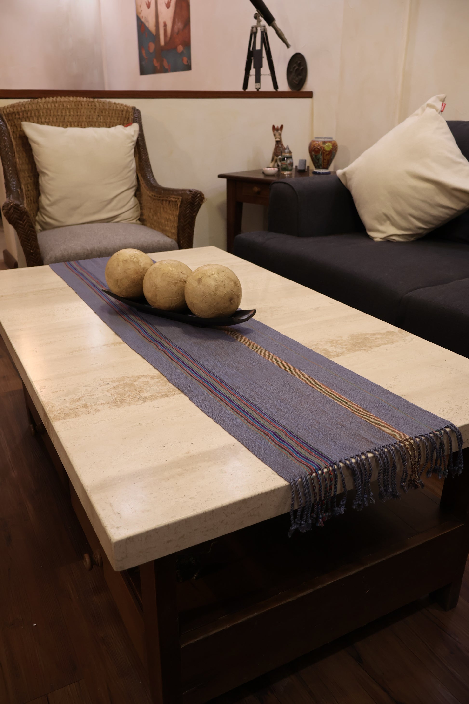 BLUE TABLE RUNNER WITH COLORFUL STRIPES