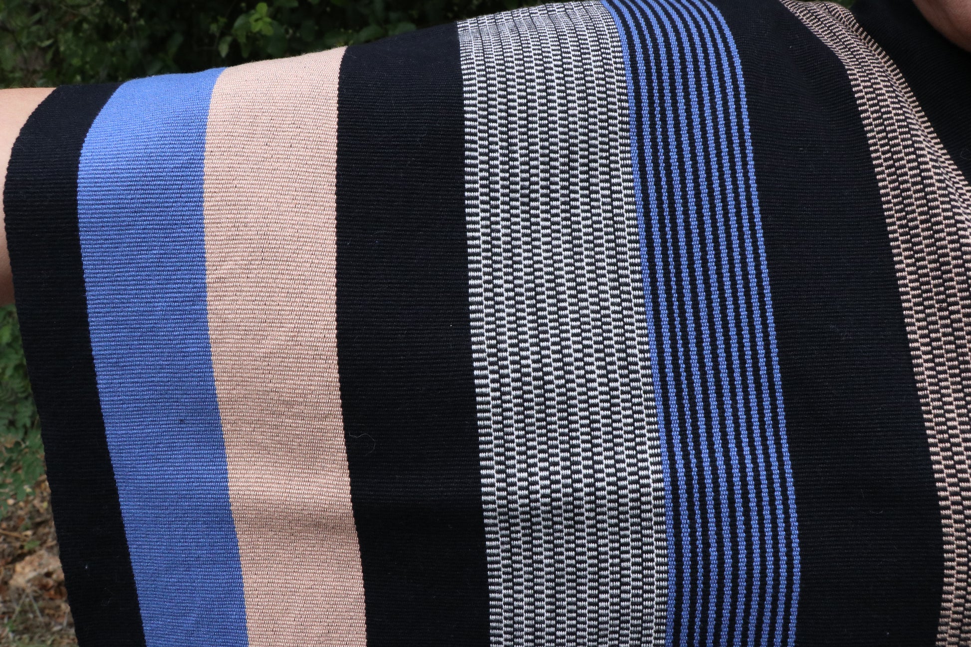 Dark and blue striped poncho made by Victoria